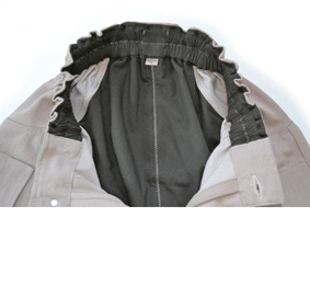 - Des ouvertures adaptées aux troubles urinaires associés et des systèmes améliorant l'autonomie. (Braguette qui descend jusqu'à l'entrejambe, sauf sur les pantalons Basic (taille élastiquée)